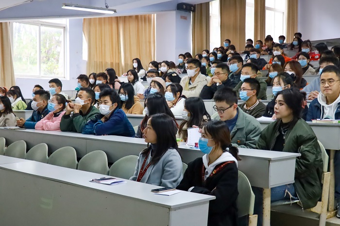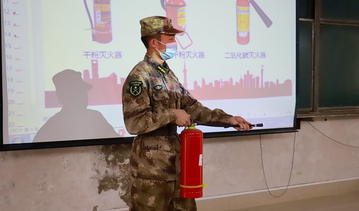 本次活动由三名退伍学生赵金仕、李聖、张洪明主讲。赵金仕从校园常见的违规电器使用案例入手,从“认识消防器材”“如何预防火灾”“火灾逃生手段”“灭火妙招介绍”四个方面介绍了消防器材、逃生方法以及科学灭火等消防安全基本知识。李聖、张洪明对灭火器的种类、结构原理、操作使用进行了说明,现场演示并指导同学们正确掌握干粉灭火器“提、拔、握、压”的正确使用方法。现场互动中,同学们踊跃参与、气氛热烈。
