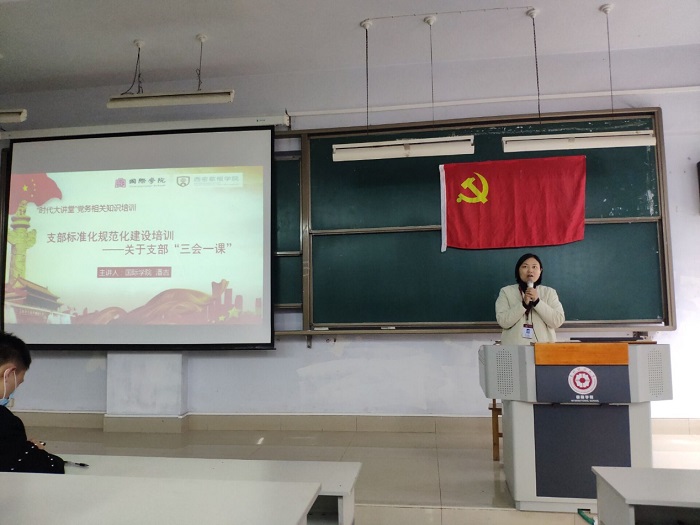 党委于贵州财经大学鹿冲关校区二教阶2-1开展所辖支部“三会一课”标准化规范化建设培训,国际学院正科级专职组织员潘吉作为主讲人,西密歇根学院党委、韩国成人直播