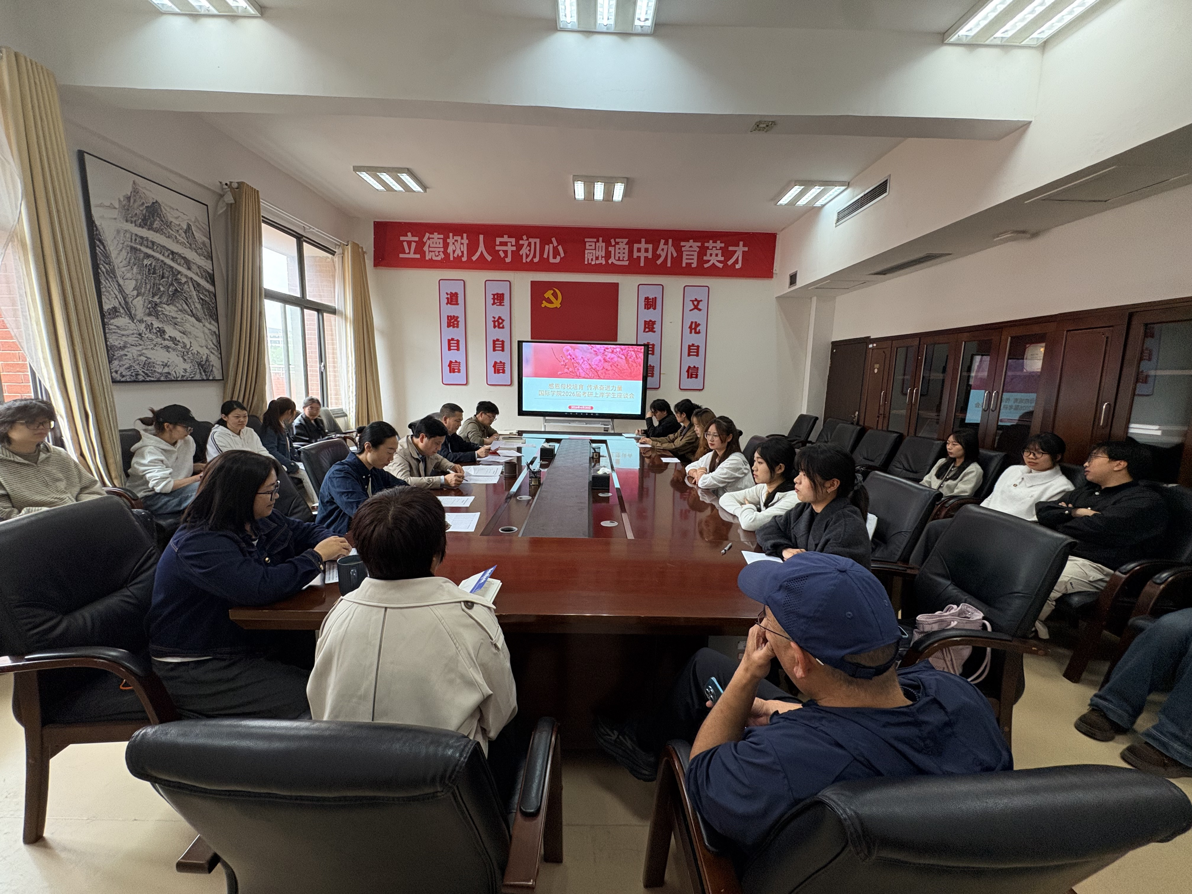 党委书记王治航、院长姜友文、党委副书记陈嵩、副院长邹晓峰、毕业班辅导员老师和2026届考研上岸学生代表以及2023年级学生代表参加会议。与会人员齐聚一堂,共同交流备考经历,分享考研成功的喜悦,现场气氛温馨且热烈。